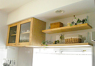 いろんなメーカーを廻りましたが、自分のイメージに合う ものが無く、「せっかくだったら木目調ではなく、本当の 木のキッチンがいいな」と思い決めました。